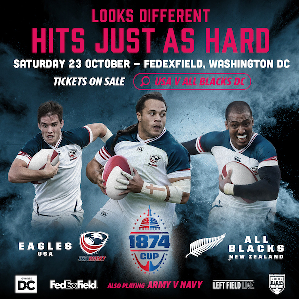 Mens National Rugby Team The Eagles will host the most successful rugby team on the planet the New Zealand All Blacks for the first time ever in Washington DC when they square off on Saturday October 23 2021 in the inaugural 1874 Cup at FedExField.